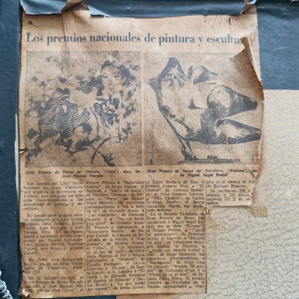 Firmado abajo a la derecha. Recorte periodístico al dorso, alusivo a un gran premio otorgado al autor en 1975.