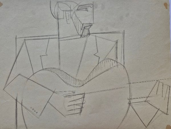 1) Cuarteto. 51 x 65 cm. Año 1965. Firmada abajo a la derecha. Manchas de pintura verde. La imagen N° 2 es el dorso de esta obra.
