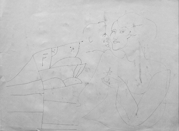 4) Figuras. 50 x 64 cm. Año 1960. Firmada abajo a la derecha. La imagen N° 6 es el dorso de esta obra.